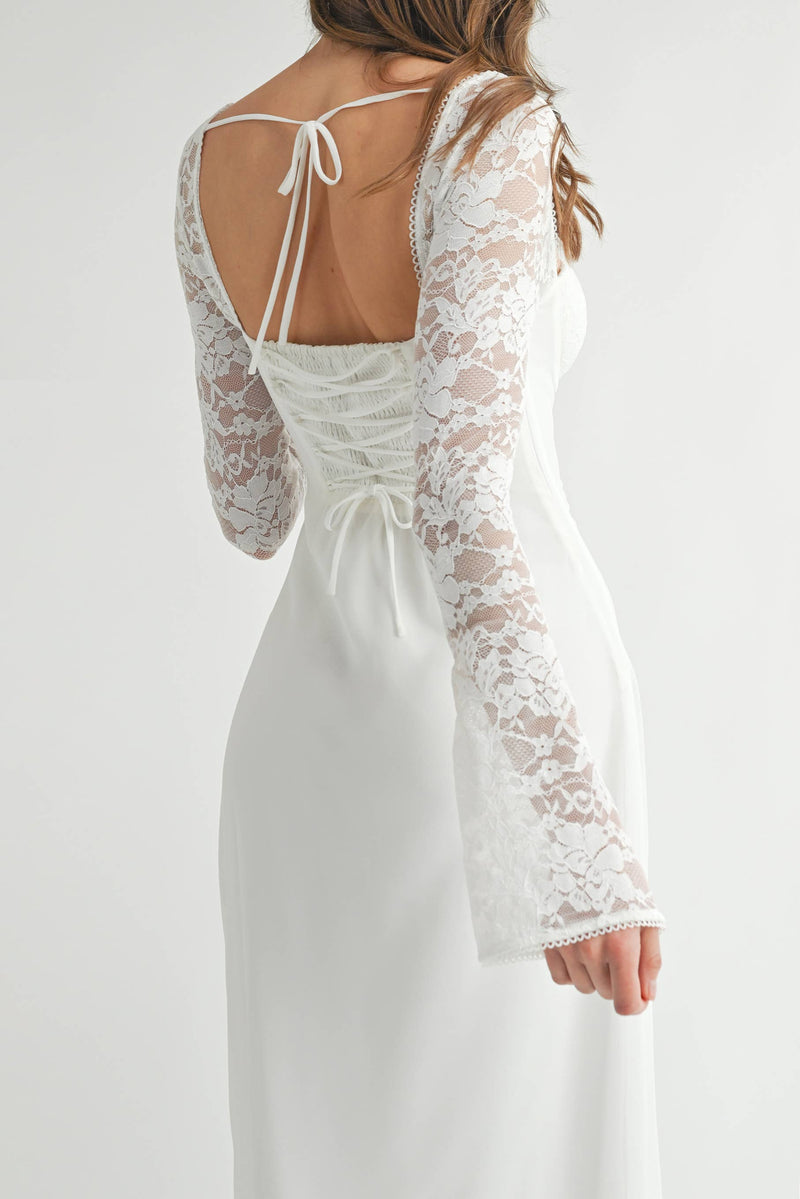 Endless Blu Lace Long Sleeve Sweetheart Dress