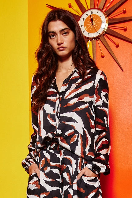 Bucketlist Animal Print Long Sleeve Button Down Blouse