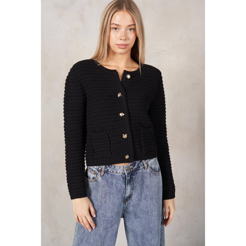Heimious Waffle Knit Cowl Neck Sweater | Black