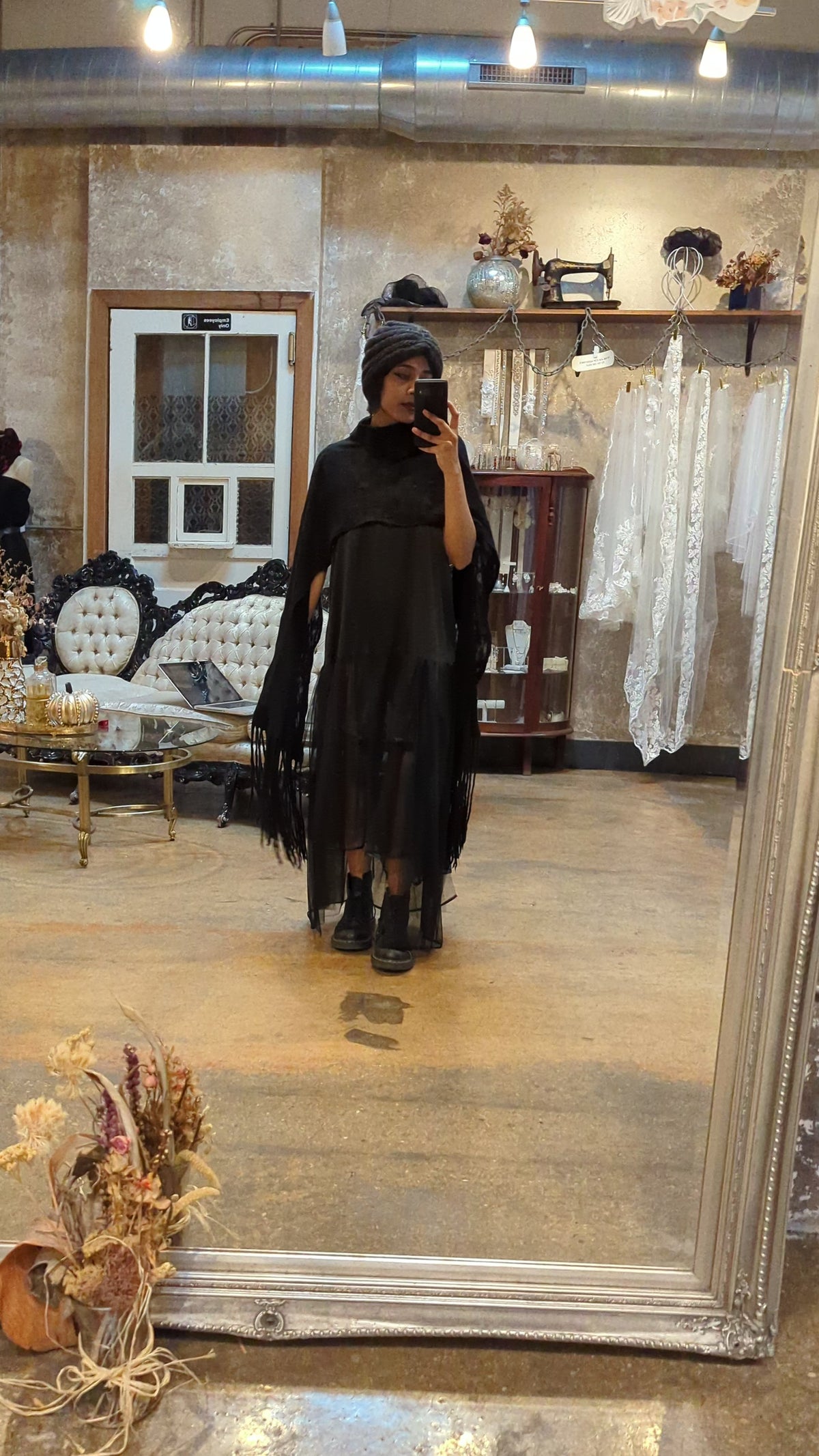 BlckBts (pronounced black boots) is a woman owned and operated local Philadelphia brand where designer Shannah Warwick crafts limited edition, hand-felted wonders. Using only the finest merino wool and silk organza, each piece is a unique expression of artistry. Her ritual creations are guided by nature's essence, by the moon's phases and celestial alignments. Shannah personally hand-dyes silk fabrics, creating cobweb-like textures through the art of nunfelting. BlckBts embraces the natural beauty of diverse body types with flowing designs that complement every individual. If you would like a custom design, please contact us and we will help you!