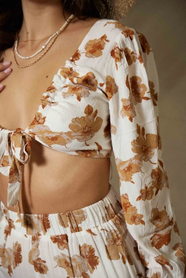 Endless Blu Floral Ribbon Tie Long Sleeve Top