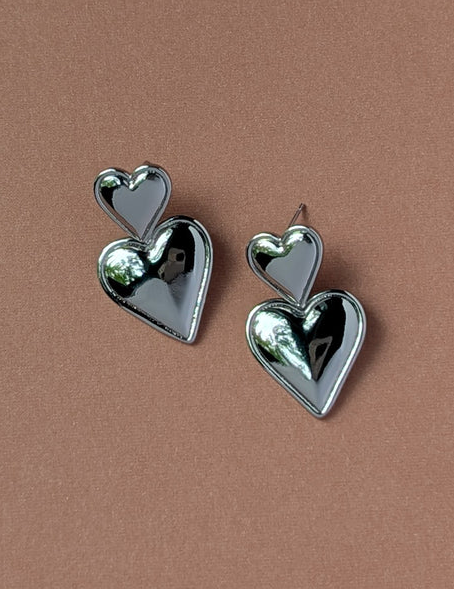 Nuance Stacked Heart Drop Earrings | Gold & Silver