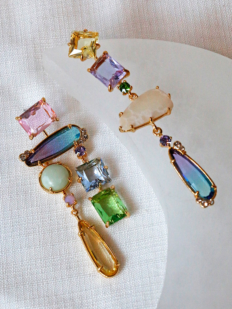 Nuance Asymmetric Jewel Drop Earrings | Multi Color