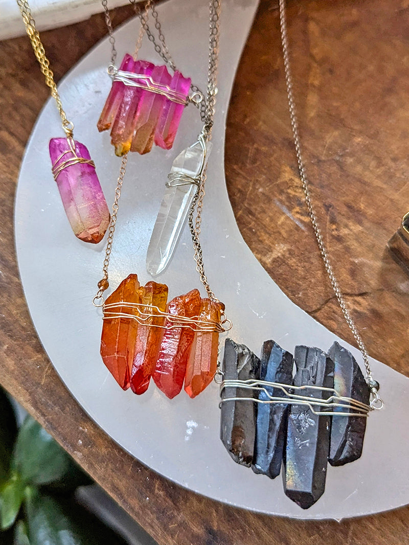 Vannucci Wire Wrapped Quartz Crystal Cluster Necklace | More Color Options