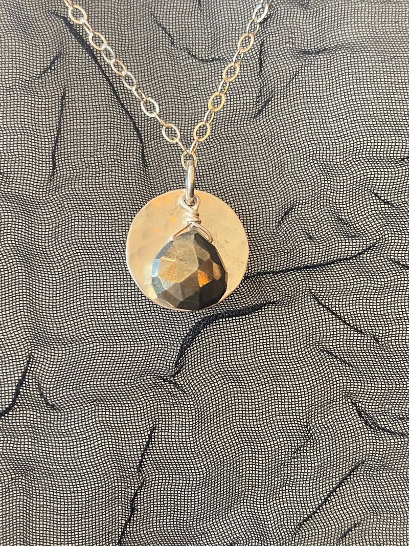 Vannucci Silver Disk with Pyrite Charm Necklace