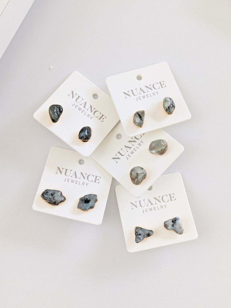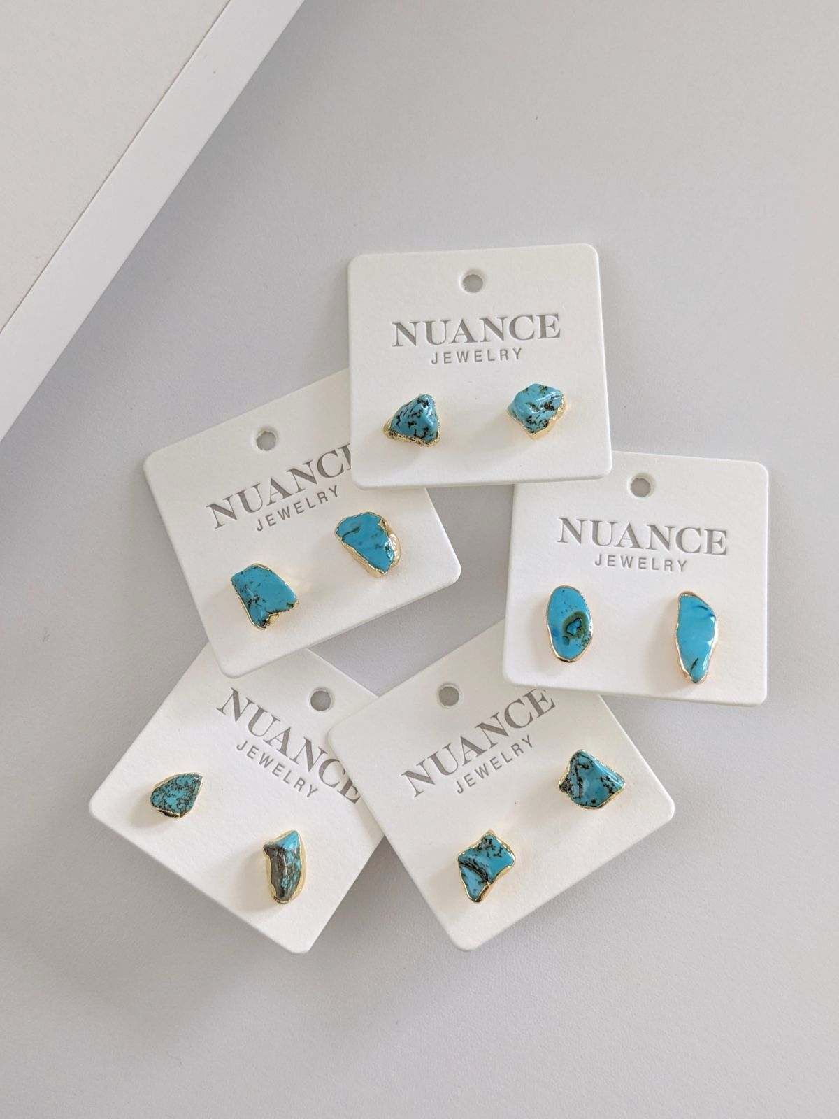 Nuance Stone Stud Earrings | Turquoise + Moss Agate