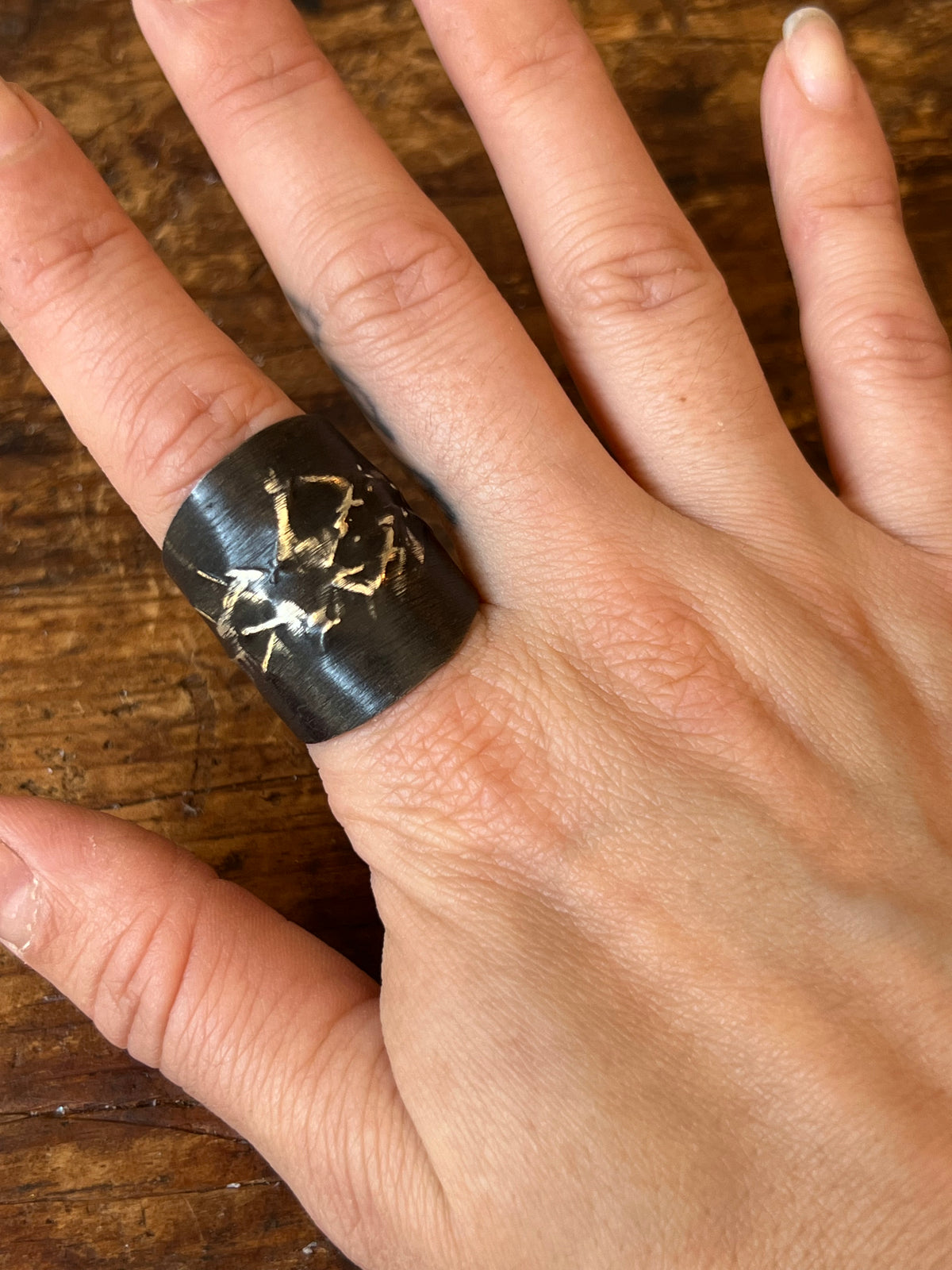 Dennis Higgins Limited Large Textured Black and Silver Ring