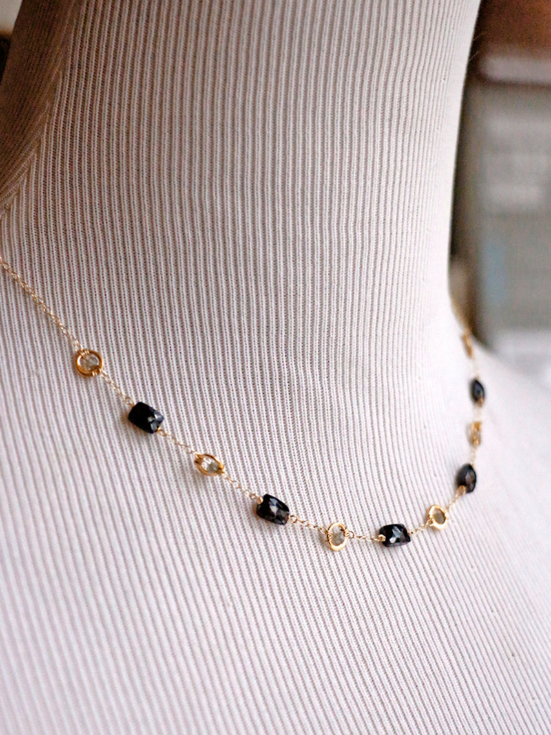 Susan Rifkin Black Spinel + Wire Wrapped Labradorite Necklace | Gold Filled (Made to Order)