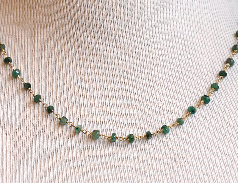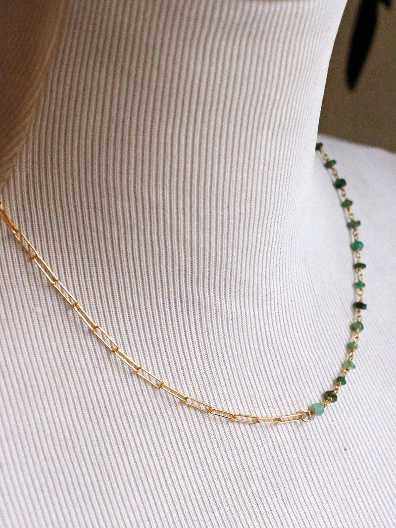 Susan Rifkin Beaded Emerald + Gold Paperclip Chain Necklace