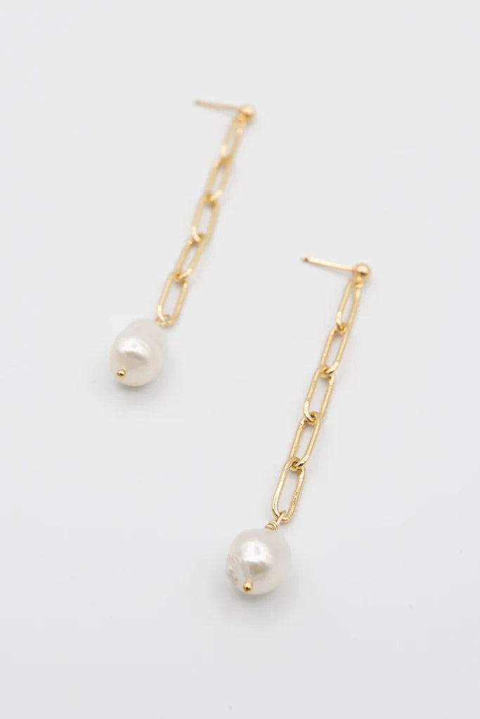 Susan Rifkin Pearl Drop Chain Earrings | Gold + Silver