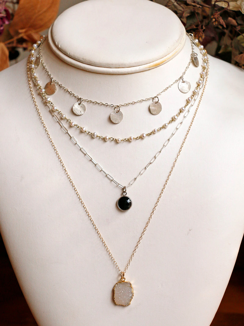 Vannucci Wire Wrapped Quartz Crystal Cluster Necklace | More Color Options