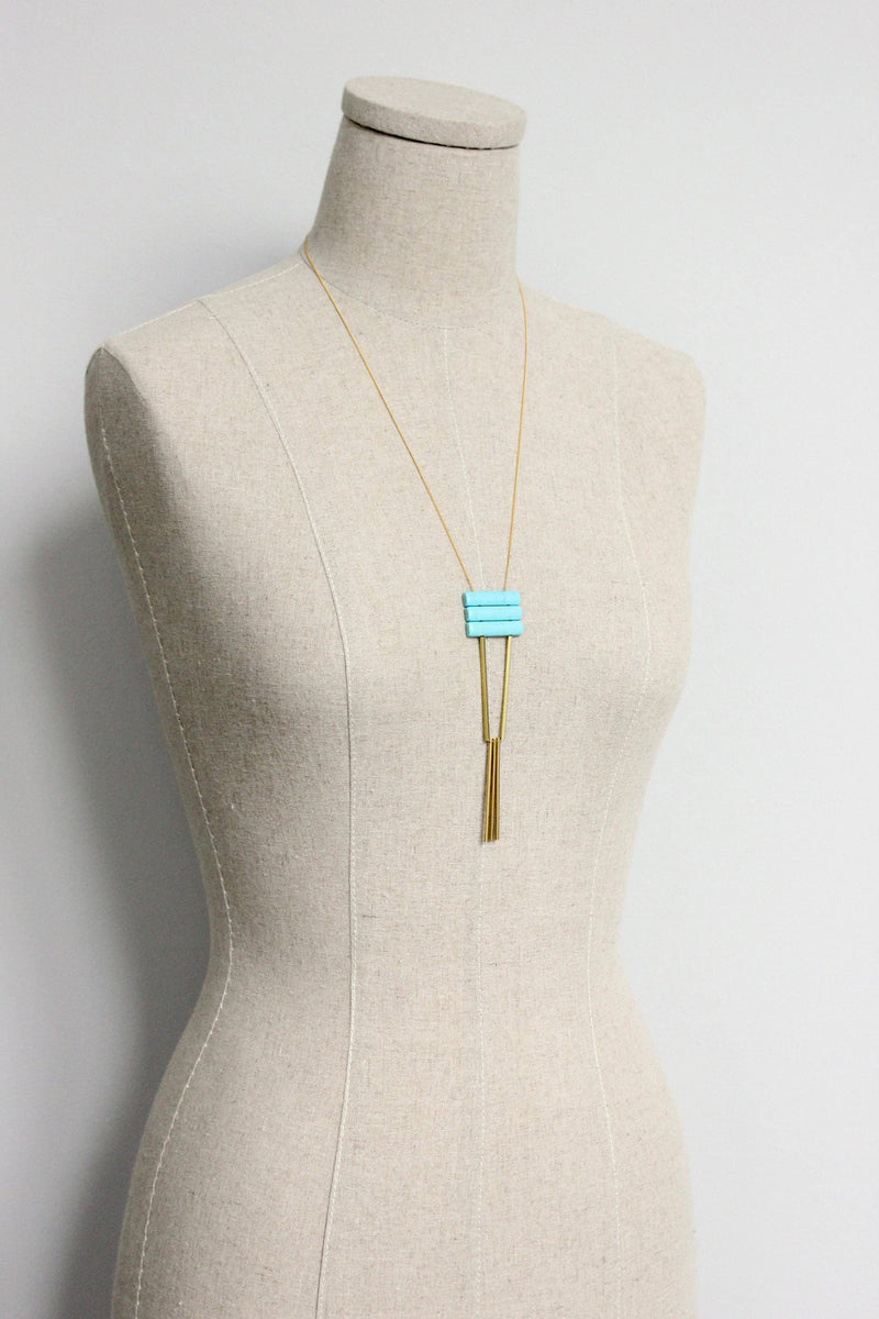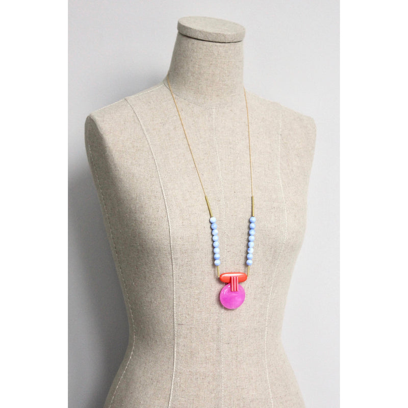 David Aubrey Geometric Hot Pink and Orange Pendant Necklace