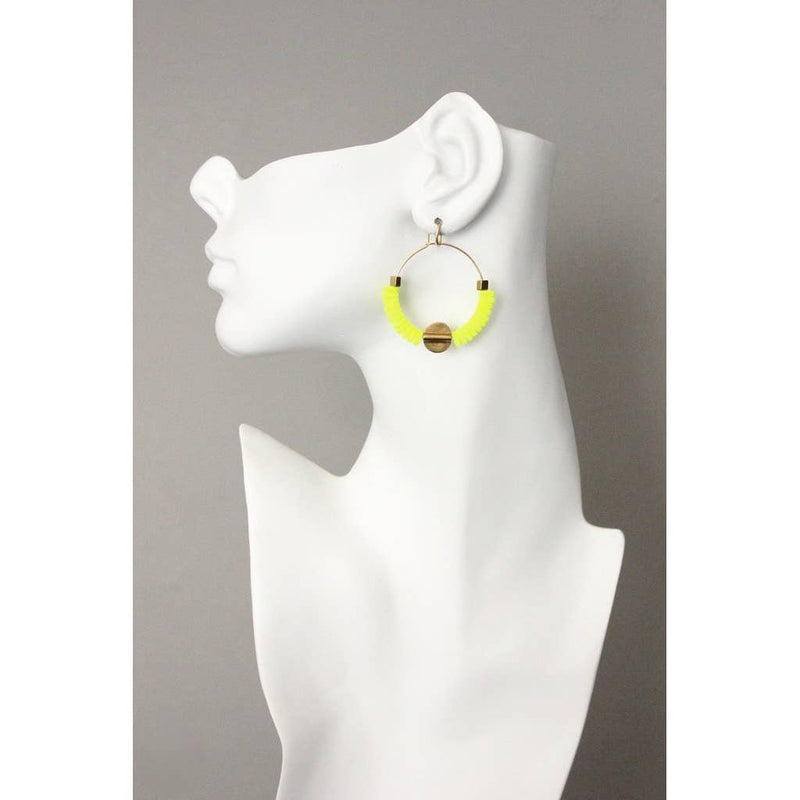 David Aubrey Neon Yellow Glass Hoop Earrings