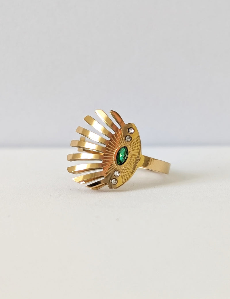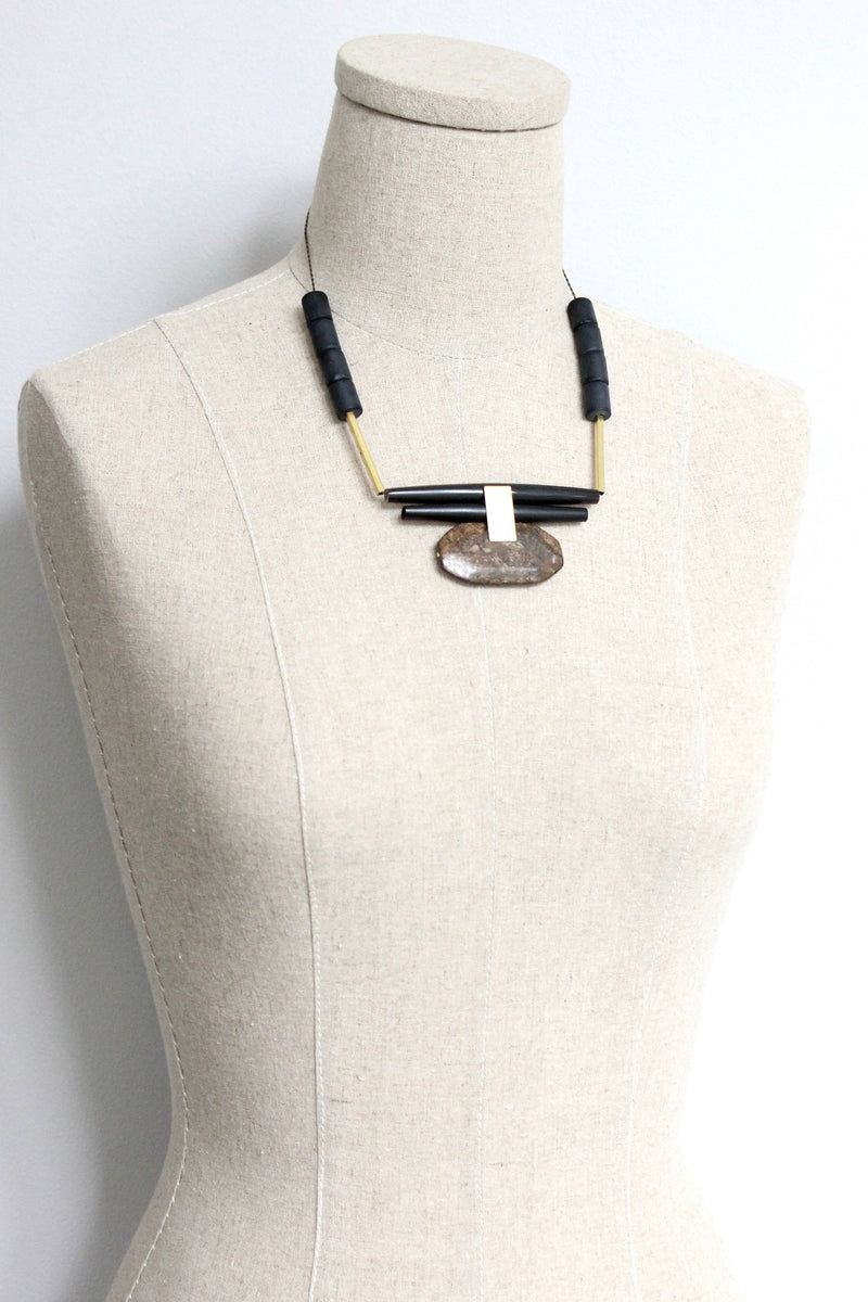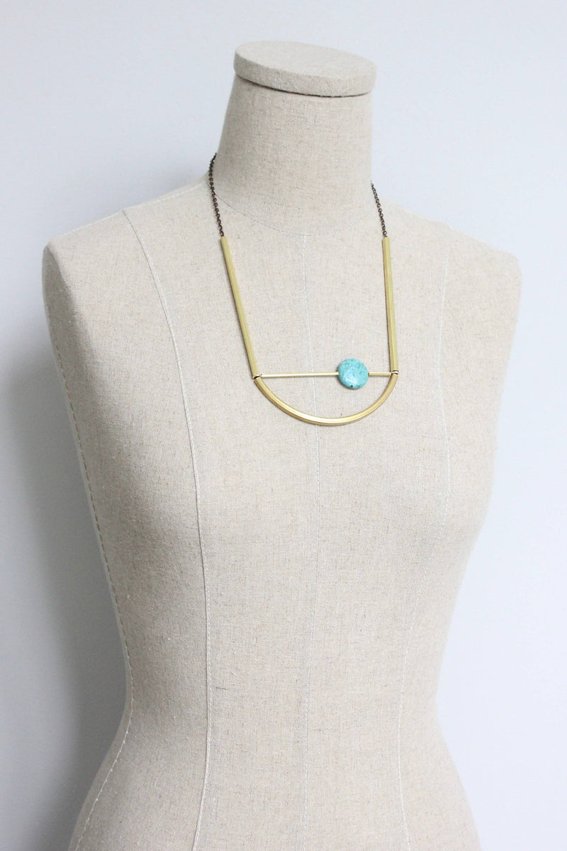 David Aubrey Geometric White Stone Ellipse & Brass Spike Earrings