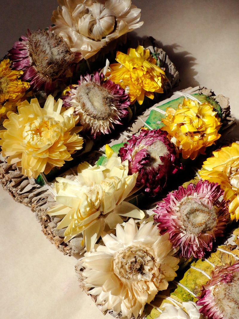 White Sage with Decorated Paper Flower Smudge Stick