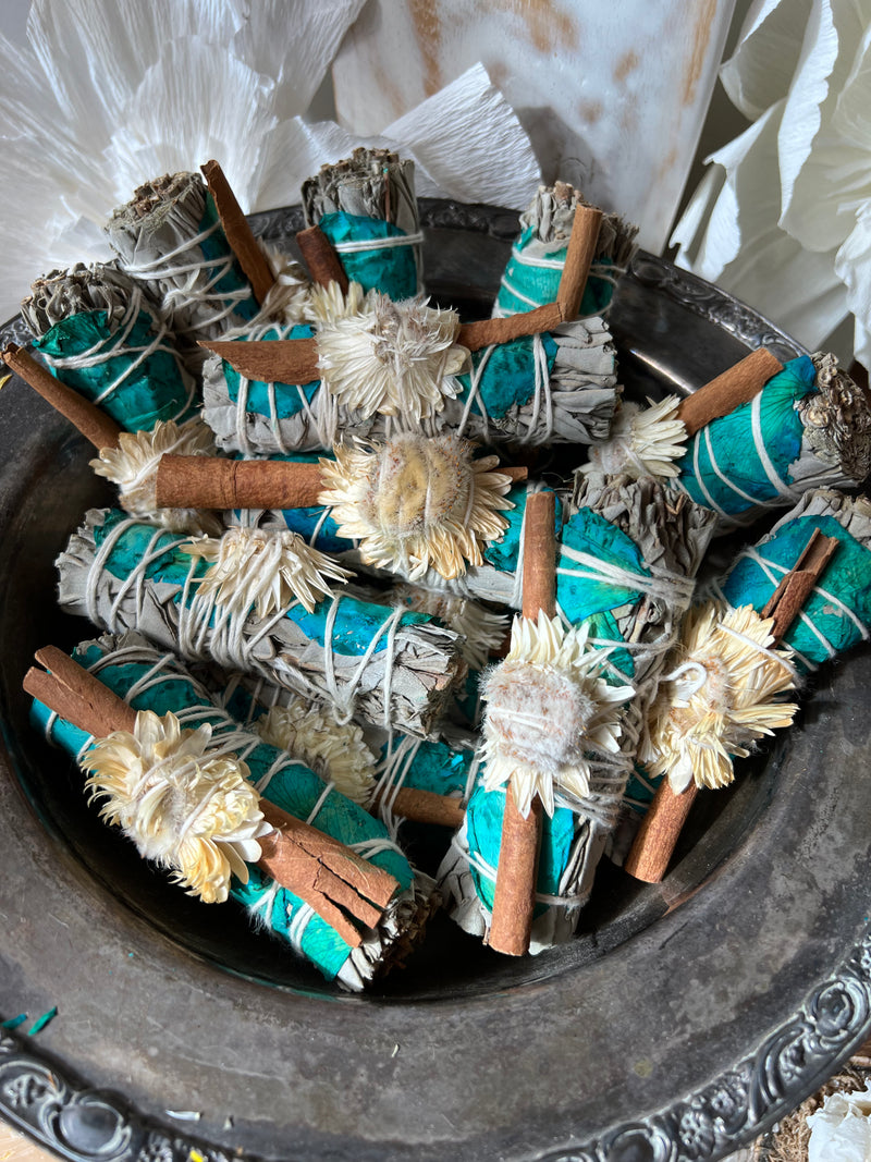 Turquoise Paper Flower & Cinnamon Sage